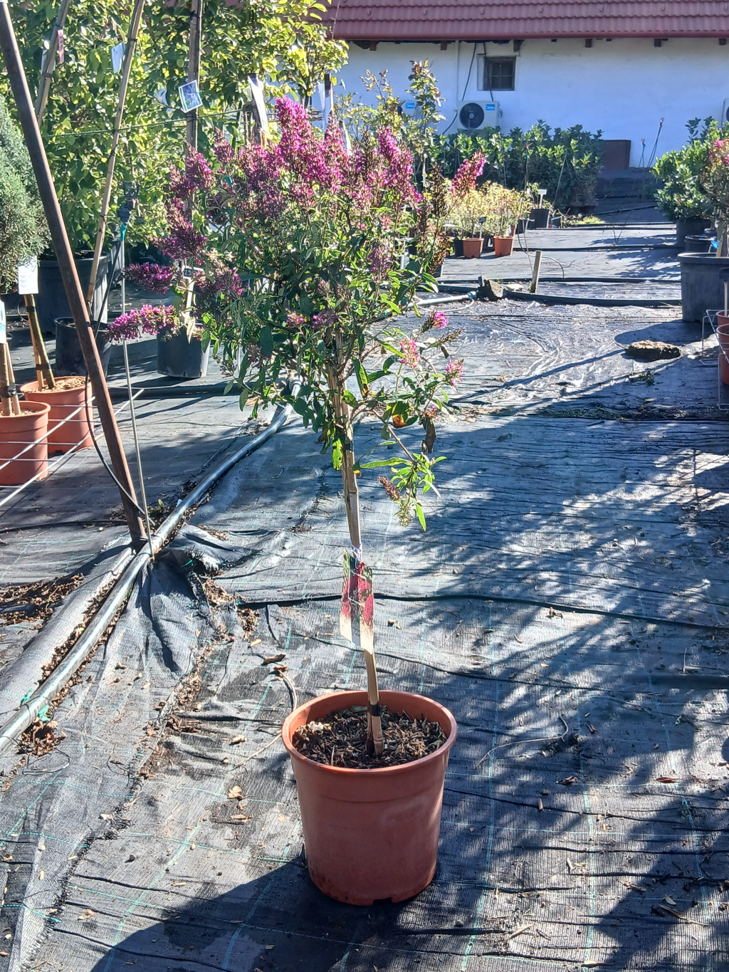 Ez a különleges változat stabil, karcsú törzsön nevelt, dús koronával érkezik, tökéletes ötvözve a klasszikus szépséget a modern kertek igényeivel. Képzelje el, ahogy ez a kecses növény büszkén áll a napfényben, lila virágfürtjei szinte vibrálnak a nyári szellőben. Hűségesen csalogatja a pillangók és méhek hadát, akik a nektárban gazdag virágokat látogatják.