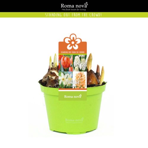 Cserepes virághagyma összeültetés 'Orange parade' (gyöngyike, jácint, nárcisz, tulipán)