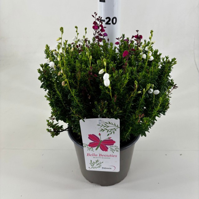 Ismerje meg a Daboecia cantabrica 'Trio' – ír hangát, mely egyedi színkavalkádot kínál kertjébe! Ez az örökzöld díszcserje tavasztól őszig virágzó, harang alakú virágaival ideális ágyásokba, sziklakertbe vagy teraszra. A 'Trio' változat három árnyalatot rejt egy cserépben, hosszan tartó látványt garantálva. Savanyú, napos vagy félárnyékos helyet kedvel, gondozása egyszerű. Tegye különlegessé kertjét e gyönyörű, ellenálló növénnyel!