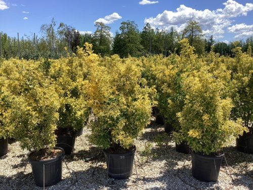 Ez az örökzöld díszcserje sötétzöld, aranysárgán tarkázott leveleivel egész évben vonzza a tekintetet. Kompakt növekedése miatt ideális választás balkonládába, edénybe vagy akár alacsony sövénynek. Könnyen gondozható, strapabíró, napos és félárnyékos helyen is jól érzi magát. Hozzon színt az otthonába télen-nyáron!