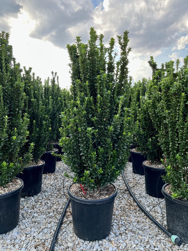 Ismerje meg a lenyűgöző Euonymus japonicus Benkomasaki Erecta - Oszlopos japán kecskerágót, mely tökéletes választás modern kertekbe vagy szűk helyekre! Ez az elegáns, örökzöld díszcserje oszlopos növekedésével egész évben struktúrát és színt visz környezetébe. Ideális sövénynek, dézsás növénynek vagy épp szoliterként is. Gondozása egyszerű, így kezdő kertészeknek is bátran ajánljuk. Élvezze a zöld szépséget télen-nyáron!